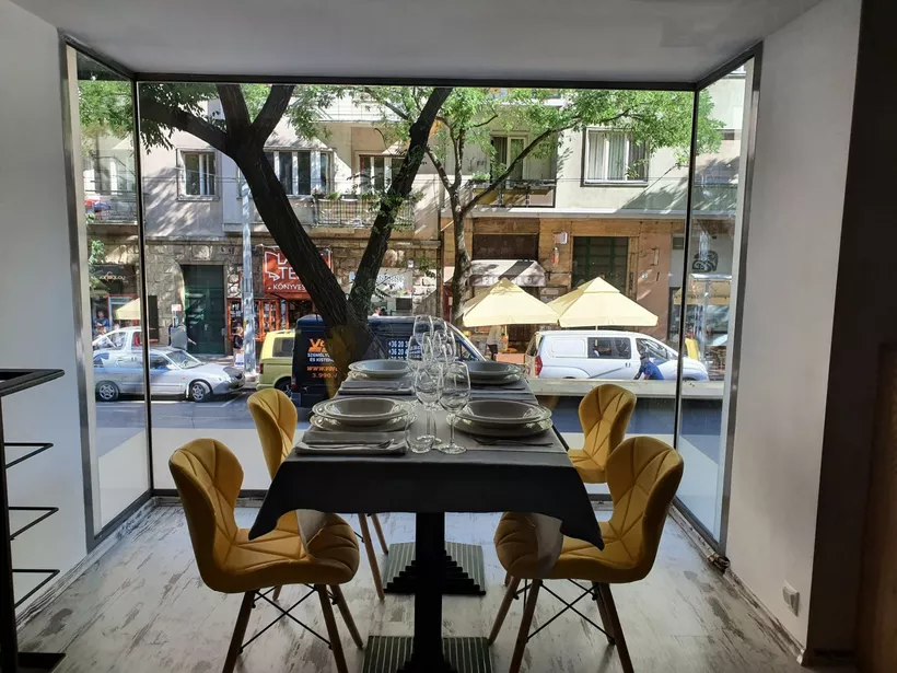 A frissen nyílt bisztró gyorsan belesimult Újlipótváros életébe, az emberek jönnek-mennek, meg-megállnak beszélgetni egyik-másik vendéggel, kutyák szimatolnak bele a levegőbe, farkcsóválással jelzik, hogy imponáló az étterem környékén érezhető illatkavalkád.