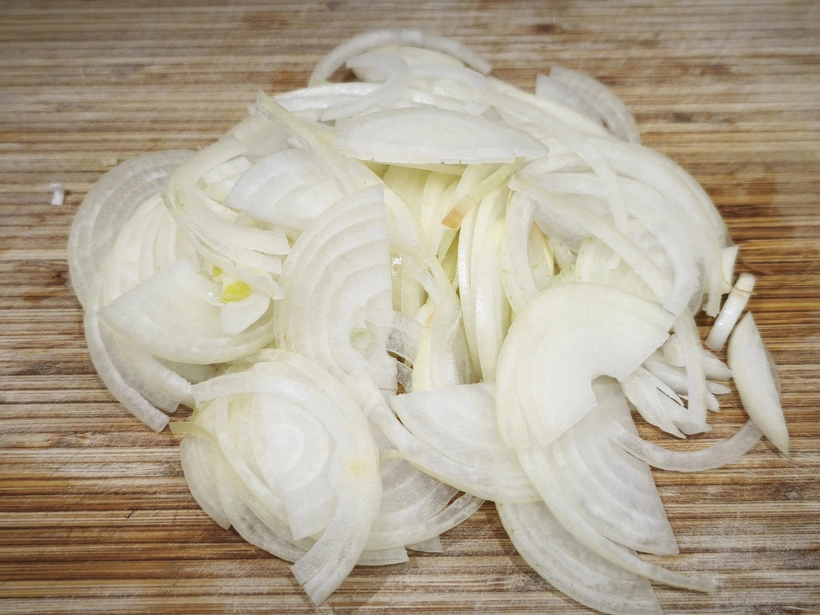 A hagymát megpucoljuk, hosszában kettévágjuk, majd merőlegesen, keresztben minél vékonyabb szeletekre vágjuk egy éles késsel. (Ezt a félkarikára – magyarul félfőre – történő vágást törökül piyazlık-szeletelésnek nevezik – így vágják a hagymát egy piyaz nevű, perzsa eredetű babos egytálétel készítésekor.)