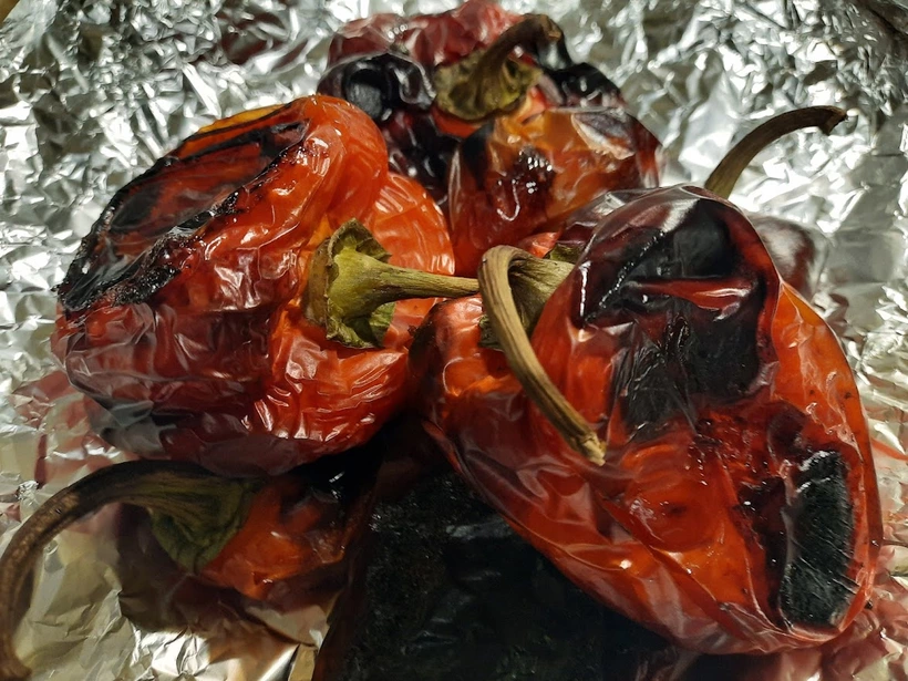 2.Ha a paprikák megsültek, csomagoljuk őket papírtörlőbe, majd tegyük egy nejlonzacskóba, és abban hagyjuk kihűlni. Így sokkal könnyebben le tudjuk húzni a héjat.