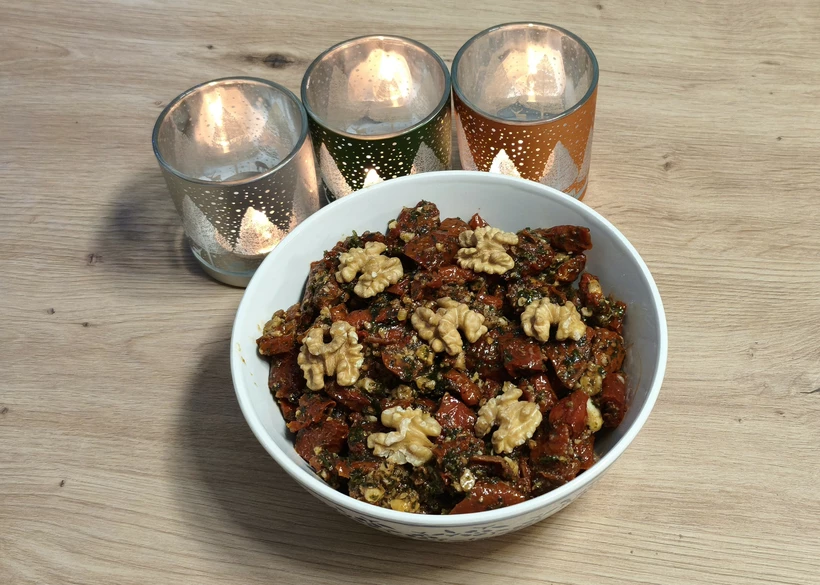 Téli meze – szárítottparadicsom-saláta dióval