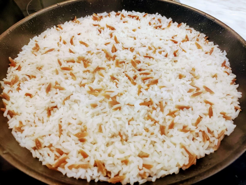 Ami a piláfot illeti: én mostanában nem serpenyőben készítem, hanem jénaiban. A piláftól elvárt „tane tane”, vagyis pörgős állag így is elérhető. A szokott módon előkészítem a rizst, de a vízzel való felöntés után az egészet azonnal átöntöm egy mélyebb jénaiba, és lefedve, 200 fokon párolom, amíg a rizs minden vizet magába szív. Utána még 10 percig a sütőben hagyom, és kész is a piláf.