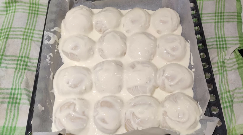 5. Előmelegített, 200 °C-os sütőben aranybarnára sütjük.
