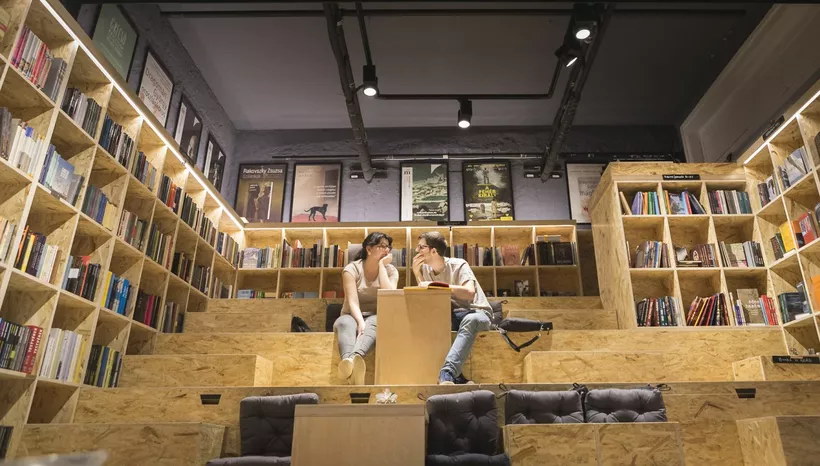 Irodalmi kávéházban vagyunk, természetes tehát, hogy a könyveké a főszerep: