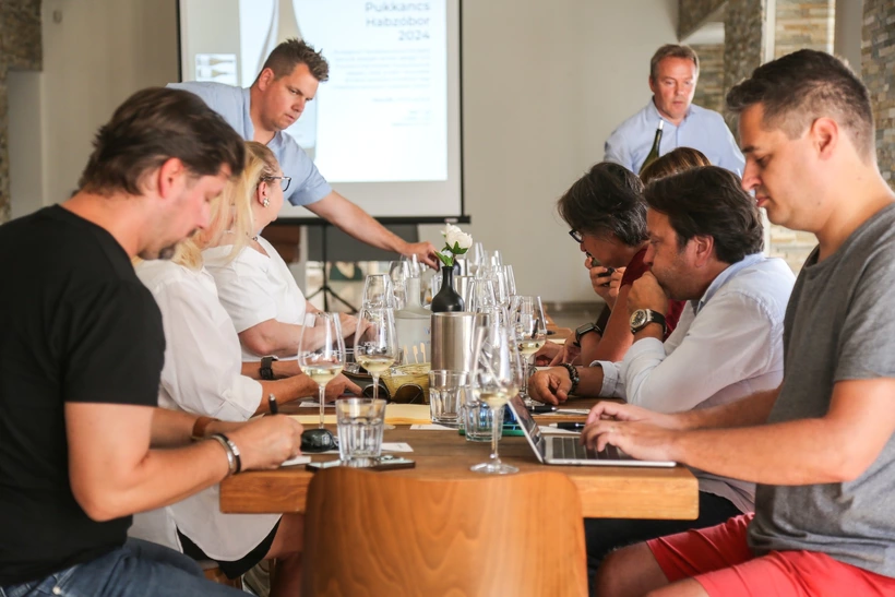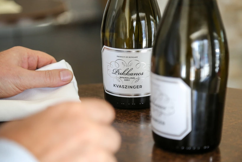 Nézegetem a negyedik generációs Kvaszingert, amint ellenőrzi a kivetítőt, készülődik az előadáshoz, és közben szemét néhányszor végigfuttatja a termen. Borkereskedők, sommelier-k, borszakértők és szakírók ülnek az asztalok körül, akik azért jöttek össze, hogy megismerjék a Kvaszinger Borászat új címkecsaládját és a legújabb, dűlőszelektált borokat. Izgalmas délutánnak nézünk elébe, 10 bor kerül a poharunkba, közülük az elsővel, a Pukkancs nevű 2024-es habzóval már van is alkalmunk ismerkedni. Furmint és hárslevelű házasítása, frissítő és könnyed, éppen üdvözlőitalnak való, biztosan szereti a közönség.