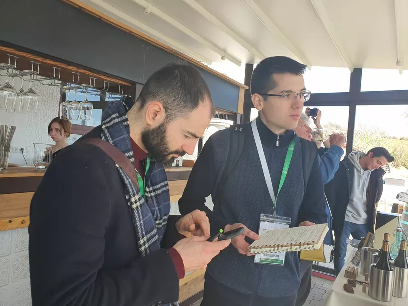 Ám mielőtt a szakemberek megérkeztek volna a Szitahegyre, Akarattyánál a Feind Borászat várta őket pezsgős tízóraira. Mint azt Maxime Belrepayre, a pincészet francia borásza elmesélte, mindenki nagyon lelkesen fogadta az ötletet. Két habzóbor és négy pezsgő került a poharakba, amelyek közül főleg a charmat technológiával készült Coupé és a tradicionális chardonnay pezsgő aratott nagy sikert.