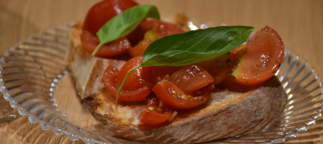Az est első párosítása – Erbaluce di Caluso 2017 és szarvasgombás bruschetta.