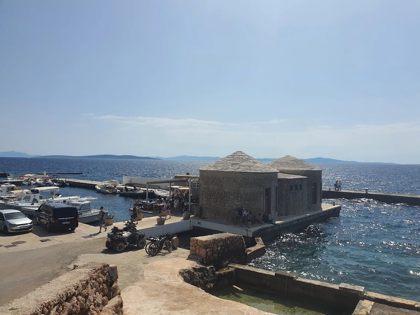 Sveta Nedelja barátságos halászfalu az északi parton. Itt, a nem túl feltűnő kikötőben találjuk azt az éttermet, ahol a Zlatan Otok nevű pincészet borait bárki megkóstolhatja, és itt van az a különleges látványpince is, ahol a boraik egy részét érlelik. A pince a vízszint alatt helyezkedik el, egy ablakon át láthatjuk is, hogyan úszkálnak kint a halak, miközben a borok békésen pihennek a hordókban. Már ha odatalálunk. Kétszer mentünk le a meredek úton a kikötőig, mert egy árva felirat nem sok, annyi sem árulja el, hogy hol is van a hely, amit keresünk. A Zlatan Otok Hvar leghíresebb pincéje, a birtokméret nagyjából 170 hektár, de ebből csak 15 hektárnyit találunk a szigeten, a többi a szárazföldön terül el. A pincészetet Zlatan Plenković alapította 1986-ban, az első palackozott évjáratuk 1991-ben került forgalomba. A tulajdonos kitartó munkájának eredményeként a Zlatan Otok néhány év alatt ismertté és sikeressé vált, Zlatan Plenković 2016-ban bekövetkezett halála után azonban a fejlődés megtorpant. A vállalkozást a három gyermek örökölte és viszi is tovább. Az étterem terasza hangulatos, az étel, amit választottunk, feledhető és drága, a pincér a borról annyit mondott: bogdanuša. Kértünk volna bővebb felvilágosítást, de azt mondta, ő nem sommelier és nem is borász, sajnálja, egyebet nem tud, egészségünkre. Egyébként a bor nem volt rossz, de messze nem ezt az élményt gondoljuk hvari tartózkodásunk fénypontjának. Mindez viszont nem szegte kedvünket, a környék nagyon szép, és Sveta Nedelja közelében is van néhány remek strand, ahol érdemes úszni egyet.