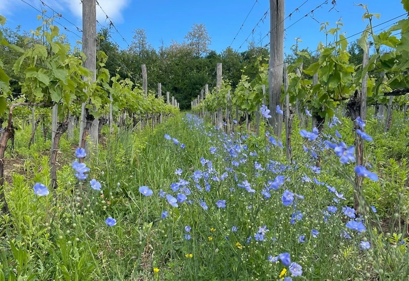 Hetente kétszer vagy háromszor körbejárjuk a területeket, megbeszéljük a következő teendőket. Húsvét után kedden is így tettünk. A kötözés utolsó momentumai, kezdődhet a drótlerakás és a beteg tőkék kivágása, elégetése. A traktorokkal szépen elindultak a munkálatok a hosszú tél után. A talajban most van annyi nedvesség, hogy tárcsával szép munkát lehet végezni az ültetvényekben, így a héten arra helyeztük a hangsúlyt. Bár soknak tűnhet az eddig lehullott csapadék mennyisége, de a rossz hírem az, hogy sajnos nem elég, annyira kiszáradtak a talajok az elmúlt években. Ősszel – életünkben először – magkeveréket vetettünk a sorok közé, és bár szépen kel, azért még egy kis eső lendítene rajta. A keverék összetevői: magvas gomborka, lándzsás útifű, búzavirág, rukkola, mezei katáng, bíborhere, fehérhere, komlós lucerna. Nagyon szép lesz, amikor majd mindegyik virágzik. Ígérem mindenképp teszek fel róla képeket.