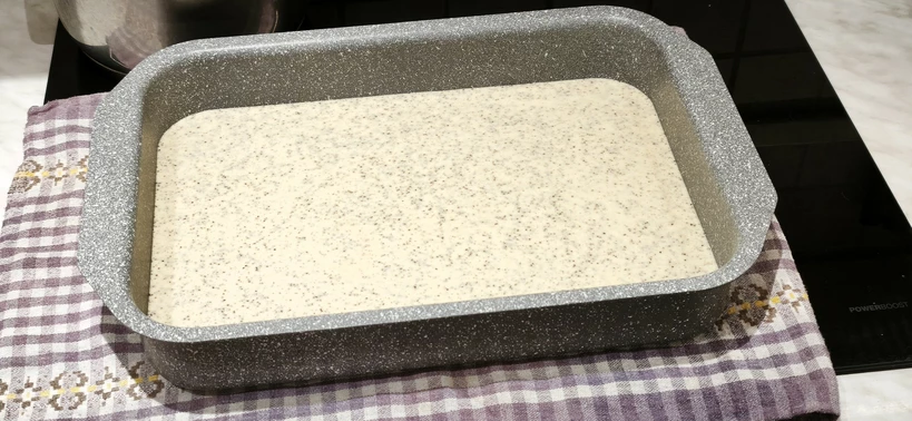 Olvasóink már ismerhetik a klasszikus revanit (a receptért katt IDE!), ami saját baráti körömben és családomban is sokak kedvence lett, többen ki is próbálták. Ha van „megúszós” sütemény, akkor ez az: a tészta összeállításában a személyes rekordom kevesebb, mint tíz perc. Ezért gondoltam, hogy ideje kipróbálni egy másik, nem ortodox változatot – és az alkalmat arra is kihasználtam, hogy egy kicsit változtassak a recepten. Az eredmény tökéletesen meggyőző, és az enyhén mákos íz szerencsésen egészíti ki a klasszikus revani ízvilágát. A receptben használt vizespohár 2 dl-es.