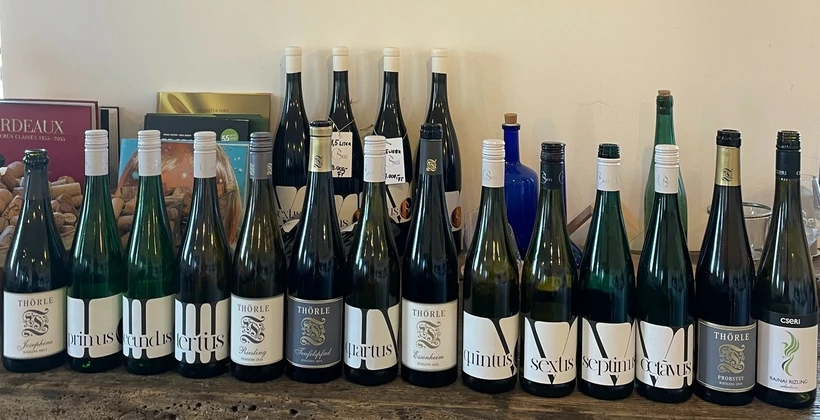 A kóstoló egy Josephine 2023 Riesling Brut Cuvée pezsgővel indult, majd egy 2024-es Feinherb Riesling következett. Aztán a 2024-es Teufelspfad Riesling, a 2023-as Essenheim Riesling, végül pedig egy 2024-es Spätlese került a poharunkba. A borsor egyértelműen visszaigazolta, amit eddig is tudtunk, hogy milyen sokszínű a rajnai rizling fajta.