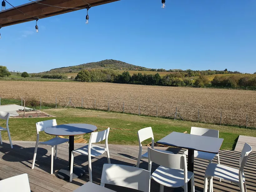 Még van ereje a napnak, de a Csúcsos-hegy lankáin már színesre festette a leveleket az ősz, és a terasz is kissé huzatos az októberi szélben. Pedig jó lehet itt üldögélni egy pohár borral a kézben, belefeledkezni a tájba vagy éppen a szomszéd portán nyargalászó lovak látványába. Most viszont inkább beljebb megyünk, a borbár barátságos tereiben amúgy is éppen pezsgőt nyit a házigazda, Bakos László.