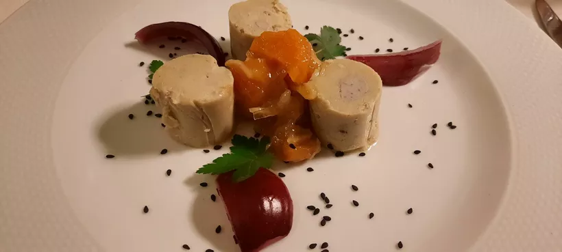 2. Véndiák – kacsamájpástétom fermentált barackkal, kovászolt kenyérrel