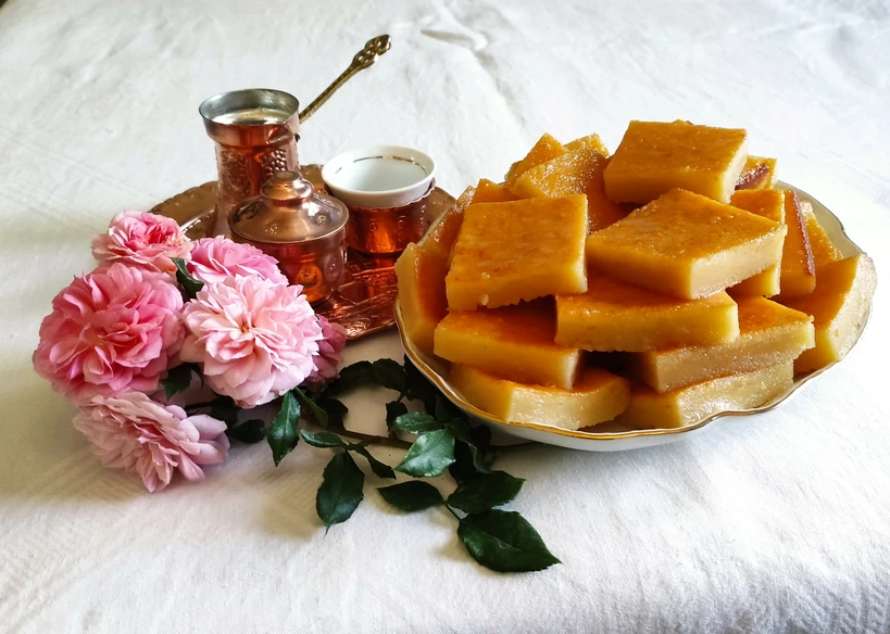 4. Amikor a tészta beszívta a serbetet, a sütemény tálalható.