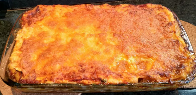 180 fokon 40-50 percig sütjük. Akkor kész, ha megpirult a tetején a sajt, addigra valószínűleg a tésztalapok is megpuhultak a besameles-paradicsomos szaftban.