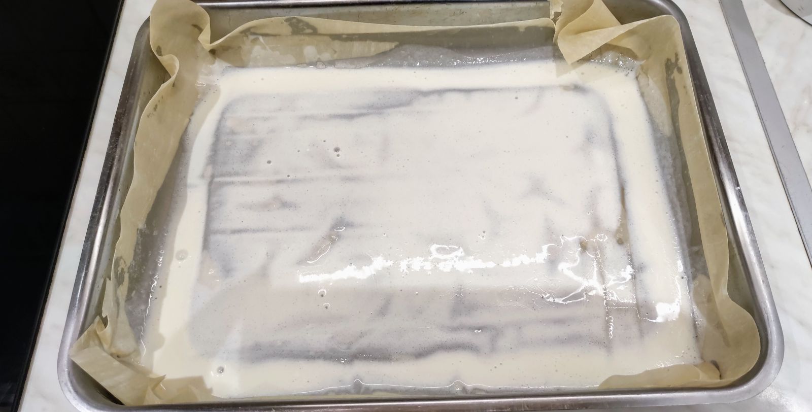 3. Mivel ez a mennyiség 8-10 személynek is elegendő, előveszünk 2 közepes méretű tepsit. Azért nem egy nagyot, mert a bolti rétestészta mérete a közepes tepsihez megfelelő. Akkora legyen a tepsi, hogy a réteslap lógjon túl rajta, mert a széleit a végén rá fogjuk hajtogatni a tetejére.