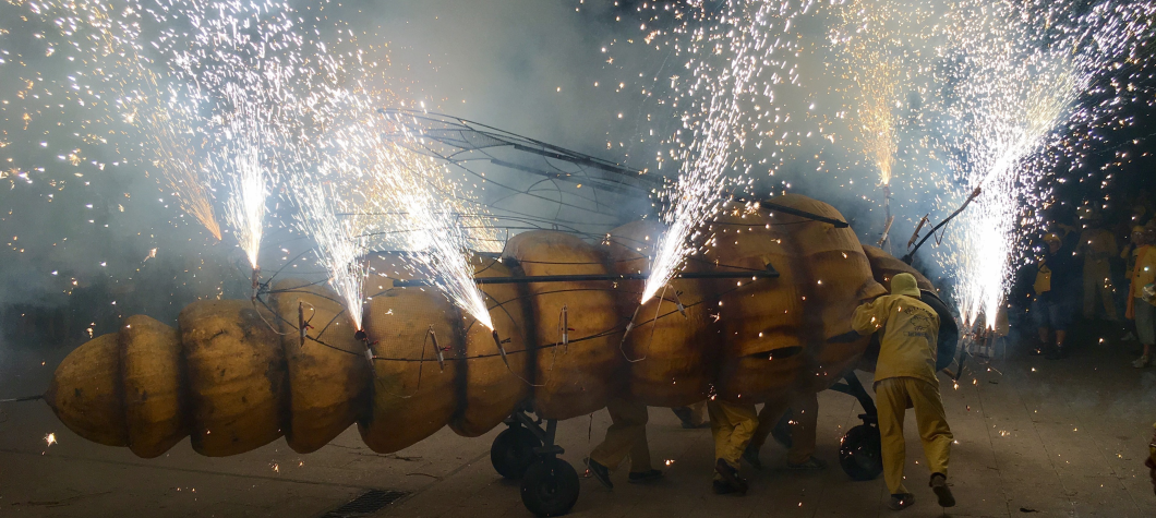 Az ünnepsort egészen gondosan kitalálták, komoly dramaturgiai íve van: első nap lazán járják a bárokat a helyi fiatalok, a dobzenekar dobpergéssel kíséri az elfogyasztott pohár italokat, a városka népe garatával bizonyítja, hogy a cava – azaz a spanyol eredetvédett, hagyományos erjesztésű pezsgő – jó. Másnap este 11-kor pazar tűzijáték után ismét felhangzanak a dobok, és két útvonalon is rémisztő, ember nagyságúnál nagyobb gyökértetű-jelmezes, sárga ruhás emberek közelednek a városközpont felé, ahol a menetek egyesülnek, együtt továbbvonulnak egy térre, ahol aztán elszabadul a pokol: szikrákat szórnak a zombimozdulatokkal táncoló lények, peregnek a dobok, és megjelenik az óriási gyökértetű, persze tüzet okád az is minden porcikájából. Az ember nem hiszi, hogy ennyi petárda létezik – és ez még csak az első két nap.