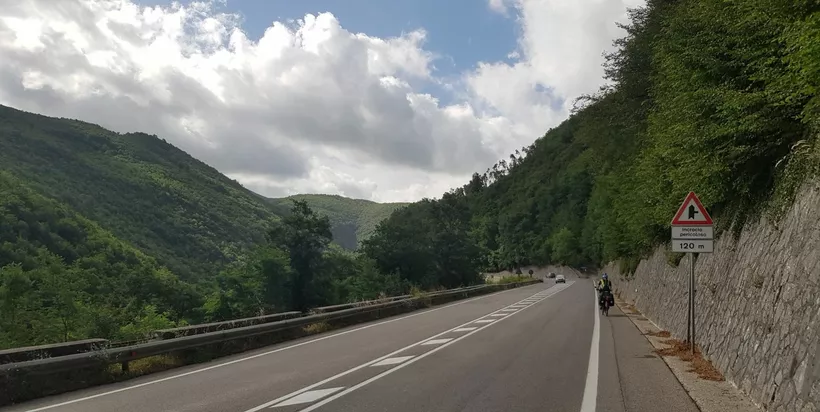 A délelőtt érdekes volt. Az út egyharmada masszív emelkedő, de tekerhető, kétharmada lejtmenet. Délre búcsút intettünk az Appennineknek. Legyőztük! Megcsináltuk!