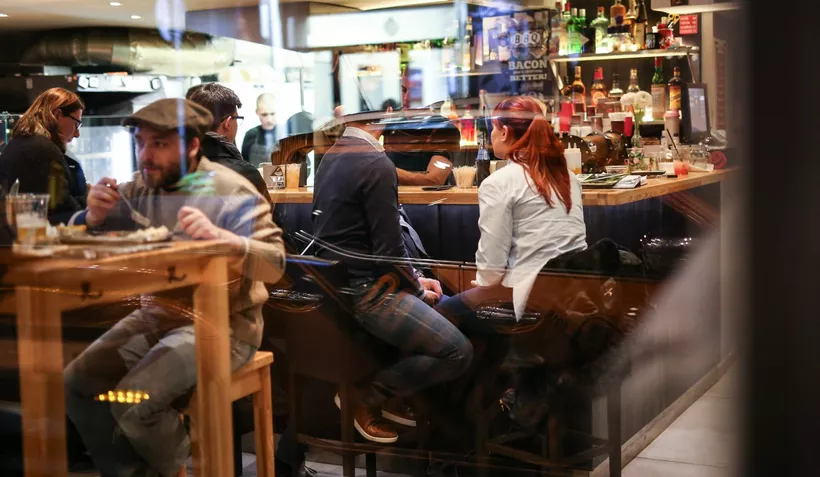 Amint a Dohány utcáról rákanyarodtam az Akácfára, rögtön megláttam a harsány portált, és örömmel nyugtáztam, hogy „terasz” is van: aki kint szeretne üldögélni, annak néhány asztalnyi hely a rendelkezésére áll, de a nagy üvegajtók is kitárhatók, így a teremben is folyamatos a légmozgás.