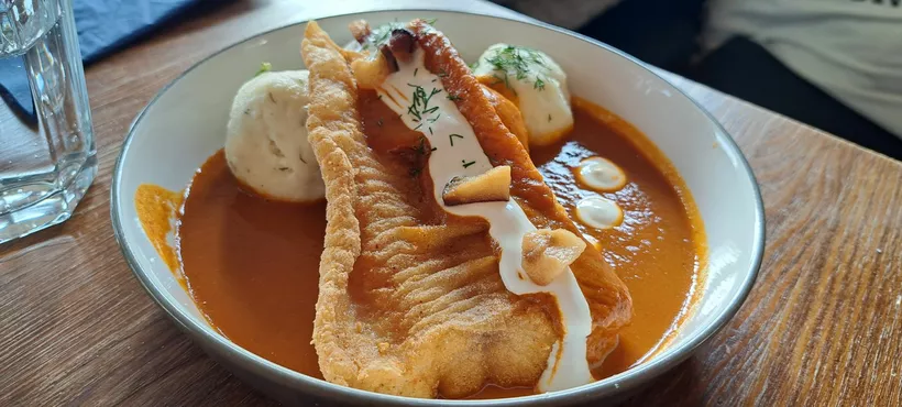 De nem csak halban, vadban is nagyot villant a hely: az őz itt nem a szinte megszokott pörkölt, hanem pecsenye formájában kerül elénk, burgonyafánk, mandulás brokkoli és ropogós hagyma a körete.