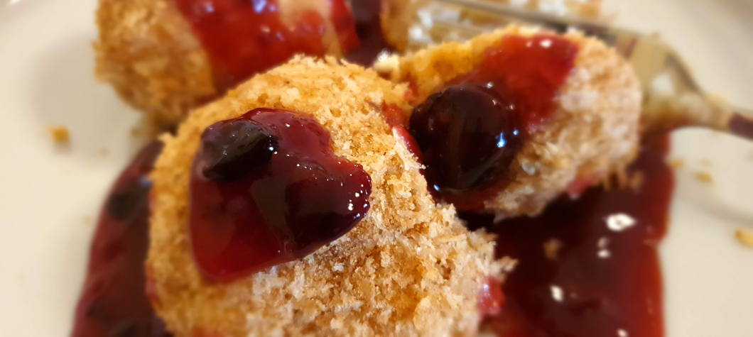 Desszertnek túrógombócot választottunk, erdei gyümölcsmártással nyakon öntve. Isteni volt, attól az apróságtól eltekintve, hogy a pirított prézli kissé visszapuhult a hőkezelés hatására, de oda se neki!