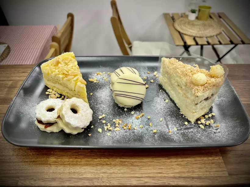 Az állandó kínálatból kiemelném a pitéket és az aprósüteményeket, a sós részlegről a baconos csavart névre hallgató nasit és a virslis hasét. Ezek különlegessége, hogy kifejezetten hasonlítanak a valódi leveles tésztából készült hagyományos változatokra. A pultban találunk szendvicseket, a mögé függesztett fonott kosarakban kenyereket és cipókat. Míg a péksütik helyben készülnek a hatalmas, 15 állásos sütőkemencében, addig a tortaszeletek egy veresegyházi, keresztszennyeződésmentes üzemből érkeznek. A sütemények jelentős része hetente változik, így nehéz rájuk unni. Ünnepek környékén számíthatunk alkalomhoz illő tradicionális édességekre, például a karácsonyi szezonban zserbóra, bejglire vagy akár mézes krémesre, ami a kedvencemmé vált.