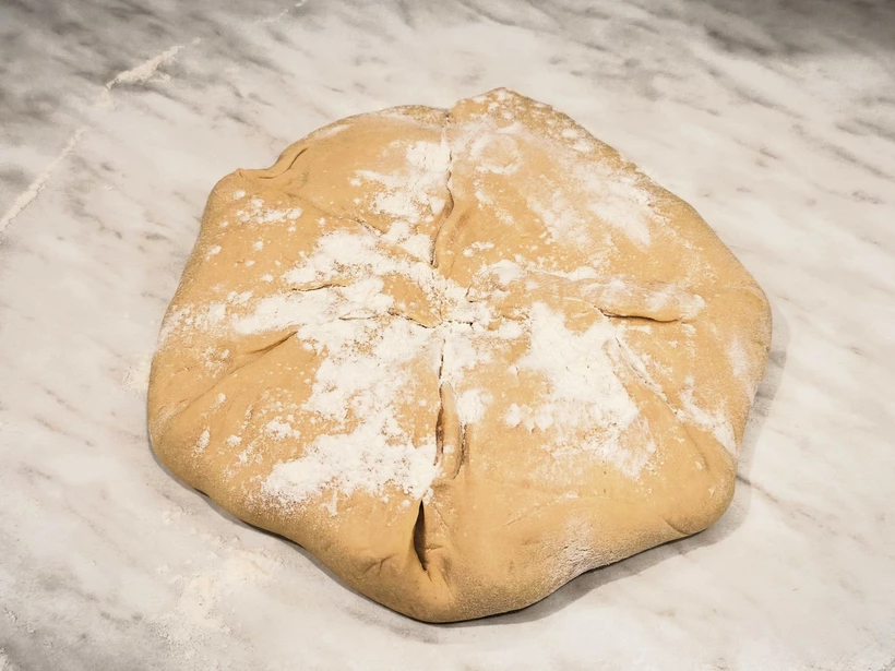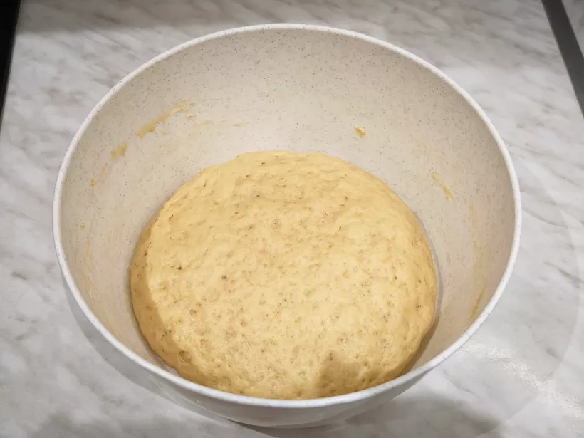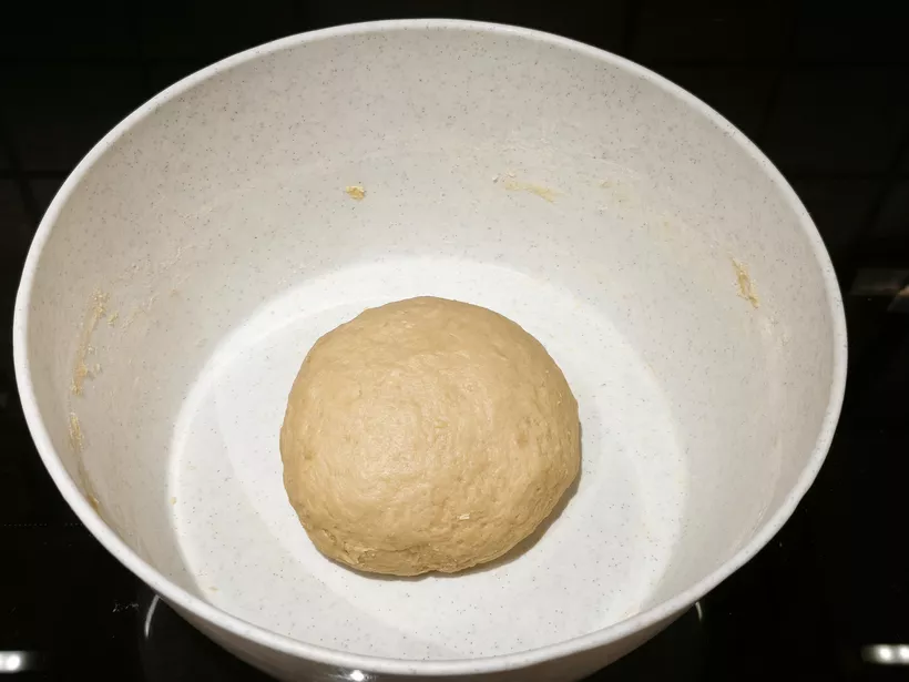 2. Amikor a tészta összeáll, beledolgozzuk a vajat, és addig gyúrjuk, amíg puha, rugalmas állagot nem kapunk. A tészta kifejezetten lágy legyen, enyhén tapadhat is a kézhez – ettől lesz majd igazán finom. A kész tésztát meleg helyen megkelesztjük.
