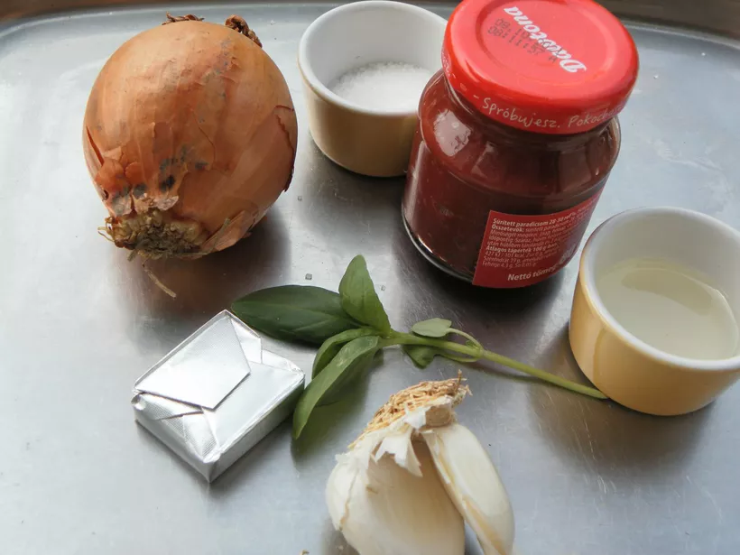 - 80 g paradicsompüré (üveges vagy konzerv)