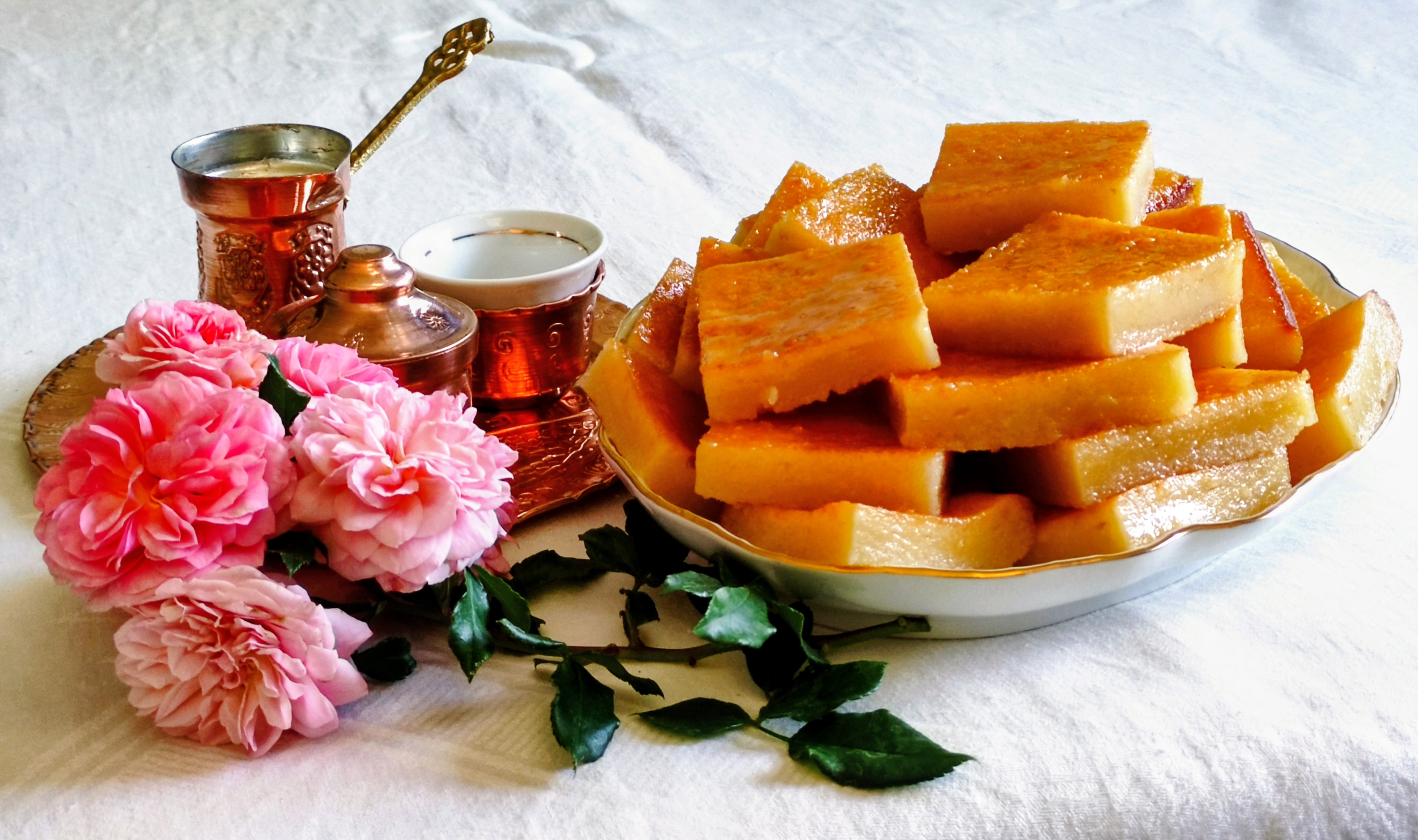 4. Amikor a tészta beszívta a serbetet, a sütemény tálalható.