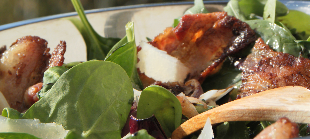 A saláta mindenki szerint egy könnyű és diétás fogás. De akkor hogy kerül bele bacon? Ez aztán a meglepő! Pedig elég belegondolni, és azonnal rájövünk, hogy egyes vitaminok zsírban oldódnak, és ki mondta, hogy ez a zsír csak extra szűz olívaolaj lehet? Érdemes megkóstolni ezt a meleg előételt, ami könnyű és finom, rengeteg az új íz benne, mégis megfelel a klasszikus magyar ízlésnek. Aki eddig azt gondolta, hogy salátát enni annyi tesz, mint ízetlen zöldségek rágcsálása után éhen maradni, az most sürgősen vegye meg a hozzávalókat, és vonuljon be a konyhába. Megéri!