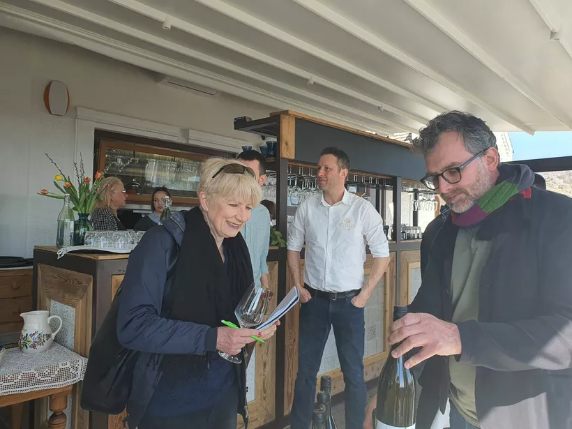 A csoport ebéd után elköszönt a pincészettől, és útjukat a Balaton déli partján folytatták, ahová mi már nem mentünk velük, de megkértük Kielmayer Kristiant, a csoportot kísérő borszakértőt, hogy foglalja össze a nap tanulságait. „Az első nap után még nehéz általános véleményt alkotni, de azt szinte mindenki elmondta, hogy milyen jó volt magukkal a borászokkal találkozni, és első kézből kapni az információkat, ráadásul úgy, hogy közben ott van a Balaton csillogó tükre a háttérben. Örültek, hogy autochton szőlőfajták borait kóstolhatták, és hogy fogalmat alkothattak róla, mekkora különbség van észak és dél között. Bár a buszon meséltem nekik a területekről, a talajokról, a borstílusokról, azért mégis egészen más volt, hogy rögtön utána meg is kóstolhatták a badacsonyi kéknyelűt, a somlói juhfarkot vagy a déli parton a Bussay Pincészet csókaszőlőjét. Többen is kiemelték, milyen jó, hogy két nap alatt ilyen széles spektrumát ismerhetik meg a magyar borászatnak, és sokan említettek számukra kiemelkedő pincészeteket” – fogalmazott a szakértő, aki azt is elmondta, milyen nagyra értékelték a vendégek, hogy a programba bevont borászatok és éttermek tulajdonosai személyesen köszöntötték a jelenlévőket, emelve ezzel a találkozó rangját.