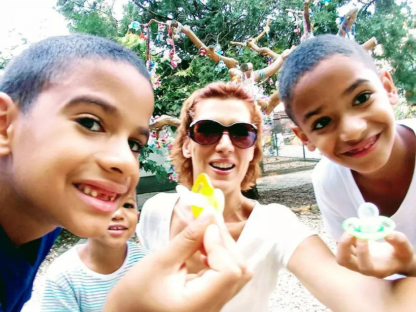 A nyíregyházi cumifa így, egy hónappal az ovi kezdete előtt maga volt a tökéletes kaland ígérete, ami óriási izgalommal töltötte el az ikreket is. Az akció lebonyolításában nagy segítségemre voltak. A szállodában kaptunk egy karszalagot, ami ott-tartózkodásunk ideje alatt korlátlan állatkerti belépésre jogosít, így aztán az első alkalommal még csak azért mentünk oda, hogy Lexi lássa ezt a misztikus fát, és kezdjen barátkozni a gondolattal. A legendás növény az állatkert végében található, a tarka tollú, rikácsoló madarak ketrecei mellett. Maga a fa is színpompás: szürreális, módfelett gusztustalan képződmény, teleaggatva agyoncsócsált, megbarnult, ollóval visszavagdosott, szalagon, csipeszen, zsinóron, egyéb nyakba akasztható alkalmatosságokon lógó, vagy csak az ágon otthagyott, több száz cifra cuclival. Felkavaró az élmény. Egy kicsit el is bizonytalanodtam, éppen ezért nem erőltettem, hogy azon nyomban rövidre zárjuk ezt a történetet. Másnap aztán frissen és magabiztosan szelfiztünk egyet a fa tövében, majd egy határozott mozdulattal megszabadultunk a kettő cumitól. Kifelé menet Lexi a pénztárnál kapott egy névre szóló emléklapot a cumifát őrző, Kvákk kapitány névre hallgató zöld szárnyú arapapagájtól, aki sok szeretettel gratulált bátor tettéhez, és egyúttal ígérte, hogy addig vigyáz a cumikra, amíg a fa tündére el nem jön értük. Az én drága kisfiam egyetlen zokszó és könnycsepp nélkül fogadta az új helyzetet. Le a kalappal előtte. Azt hiszem, a szülők többsége érti, miről beszélek.