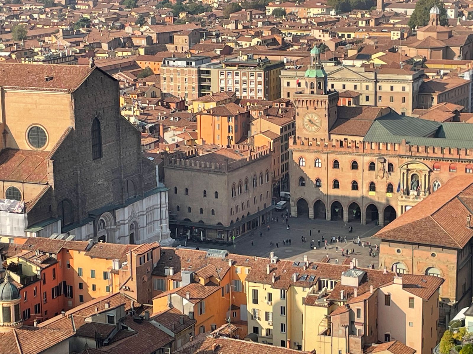 Sorozatunk első részében a bolognai palotákkal ismerkedtünk meg. Maradt még a központban egy ikonikus palota, a Palazzo dei Banchi, amely épp a városházával szemben áll. Homlokzatát, amely 96 méter hosszú és egy méter vastag, a Vignola néven ismert Jacopo Barozzi tervezte 1565 és 1568 között azzal a céllal, hogy a tér egységesebb legyen, és az épület eltakarja a mögötte lévő kis középkori utcákat, amelyek ma is piacként működnek. Árkádjai alatt a középkorban pénzváltók üzleteltek, amelyeket bankoknak is neveztek, innen a palota neve.