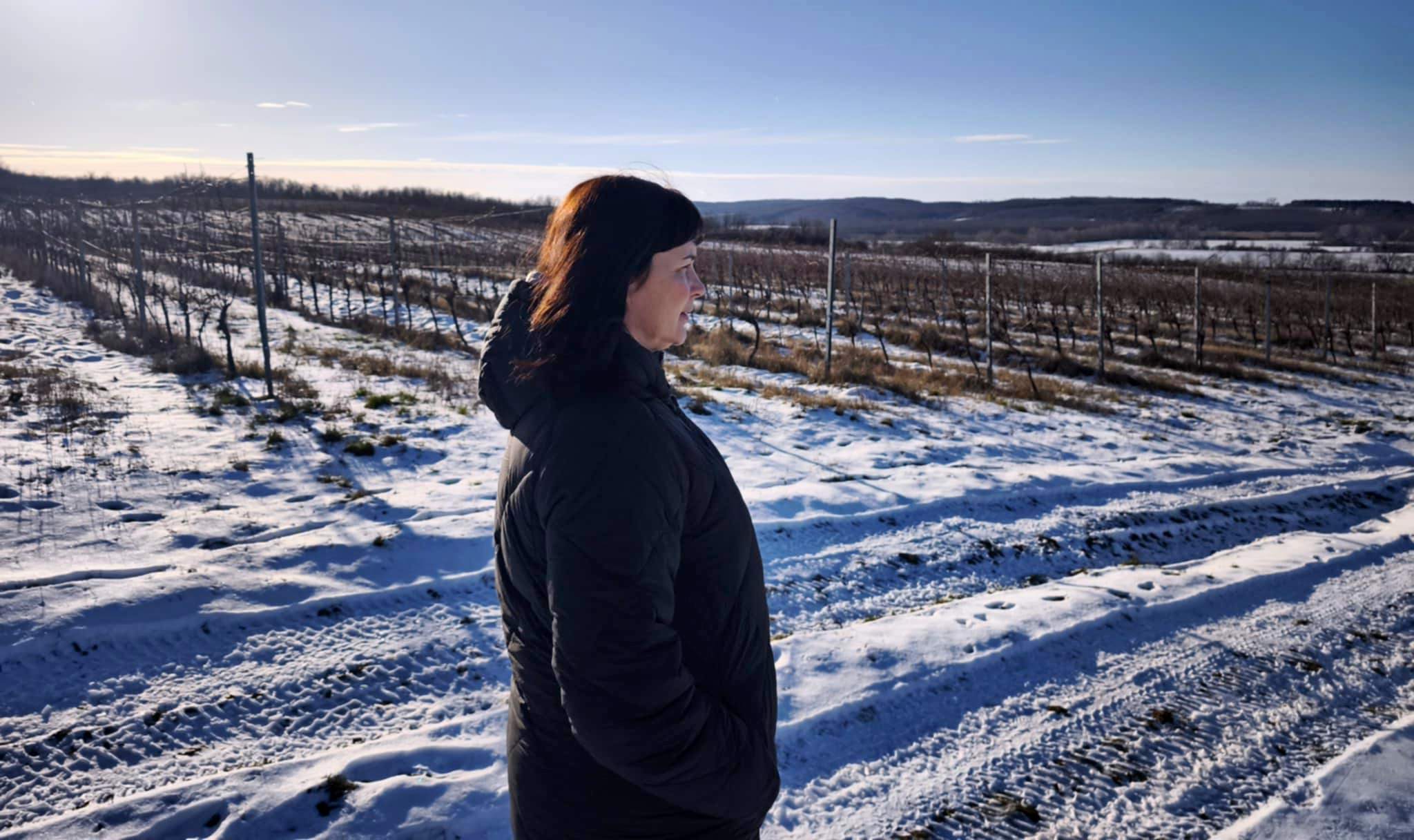 A tervezés ilyenkor nemcsak a magánéletet érinti, a munkák beosztásáról is szól. Végiggondoljuk, hogy egy évvel korábban mi sikerült jól, és mi az, amin változtatni kell. Egy gazdaságban a hatékonyság növelése mindig rendkívül fontos, és a szőlőültetvényeinken van még dolgunk ezzel. Felállítjuk a fontossági sorrendet, kijelöljük a határidőket, de van, hogy ez szinte azonnal megdől, ugyanis az időjárás mindent felülírhat. Naponta nézem az előrejelzést, és most az egyik szemem sír, a másik nevet. Egyrészt nagyon örülök, hogy jönnek a január eleji mínuszok (tudom, hogy többen nem így vagytok ezzel), mert ilyenkor sok kórokozó elpusztul, amivel csökkennek a növényvédelmi munkák, és ezzel párhuzamosan a költségeink is, ami nem elhanyagolható szempont. Másrészt viszont jó lenne haladni a metszéssel, a támrendszer javításával, és a nagy hidegben érthető módon senki nem dolgozik szívesen a területeken. Az első januári hétvégén kimentünk a szőlőbe, hogy felmérjük a terepet és a ránk váró munkákat. A napsütésben szinte szikrázott a hó. Nézzétek, milyen gyönyörű!